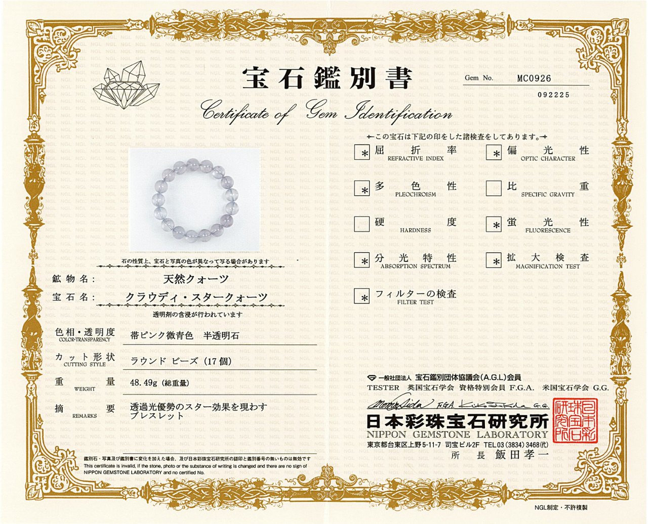 - 鑑別書付き:MC0926(宝石名:クラウディ・スタークォーツ)