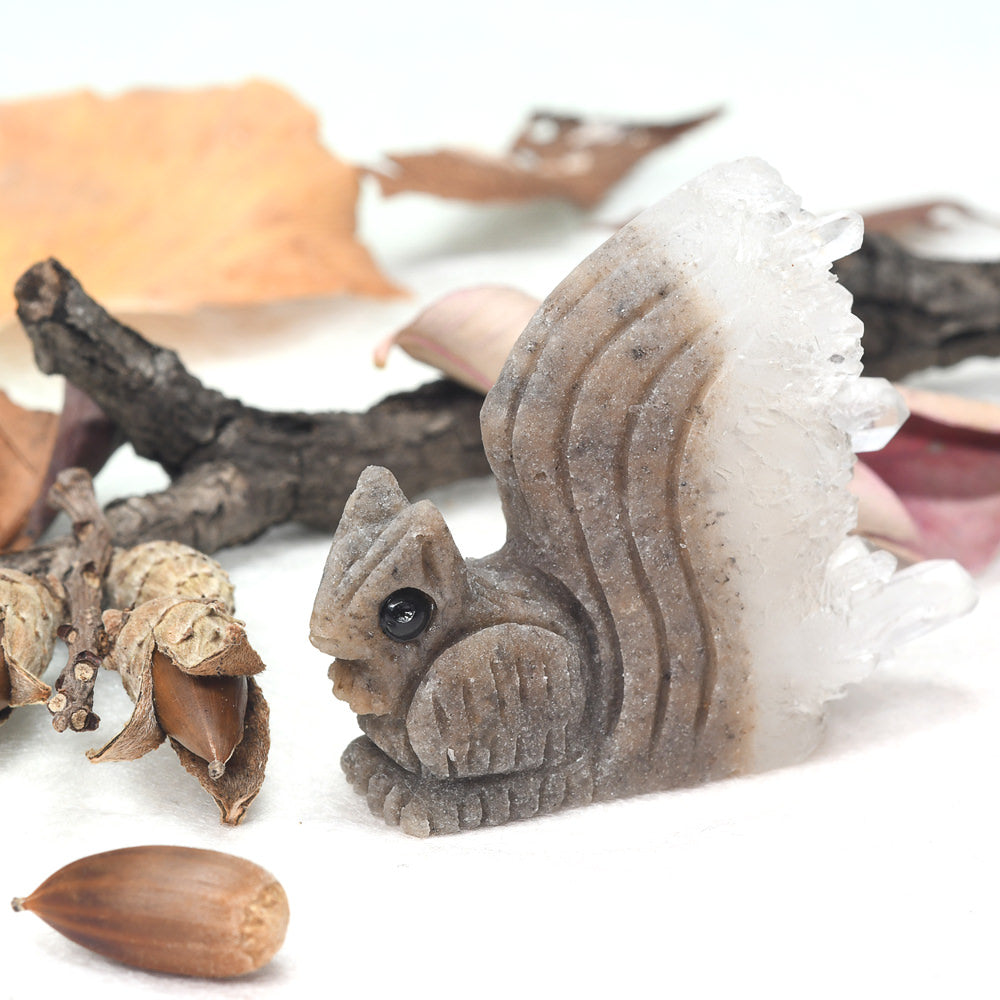 水晶クラスター リス 彫刻置物 48.9x39.2x16.2mm #RJ167