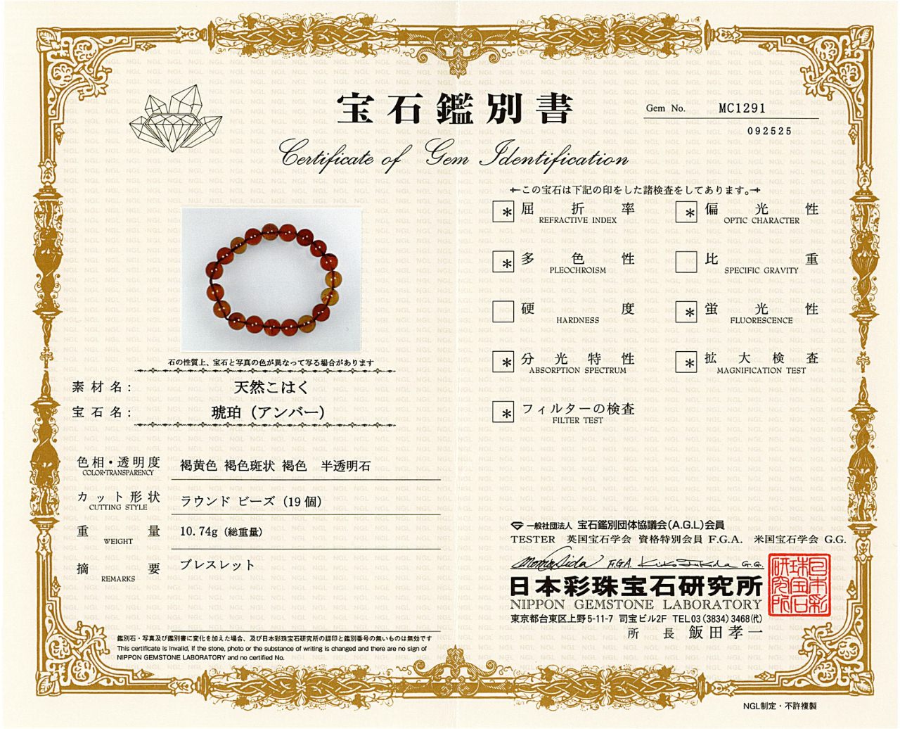 - 鑑別書付:MC1291