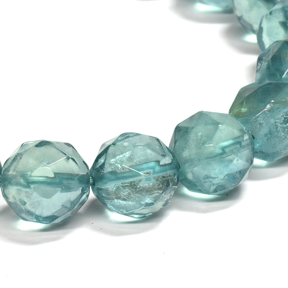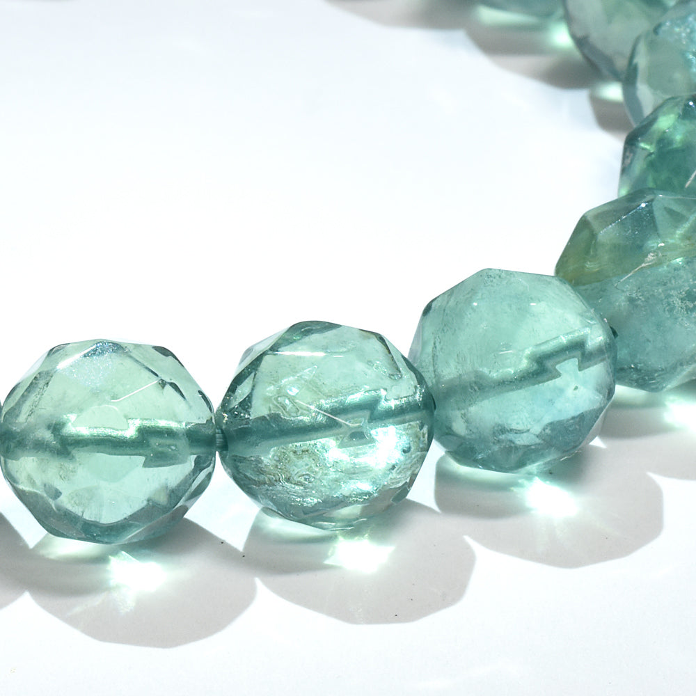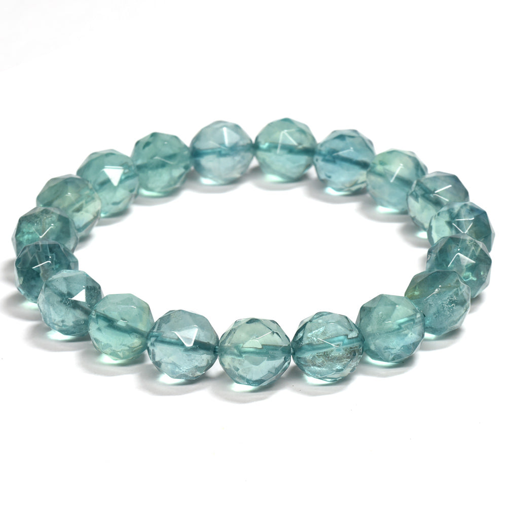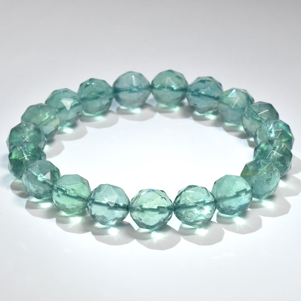 ブルーグリーンフローライト カットカットビーズ ブレスレット 9mm #RM114